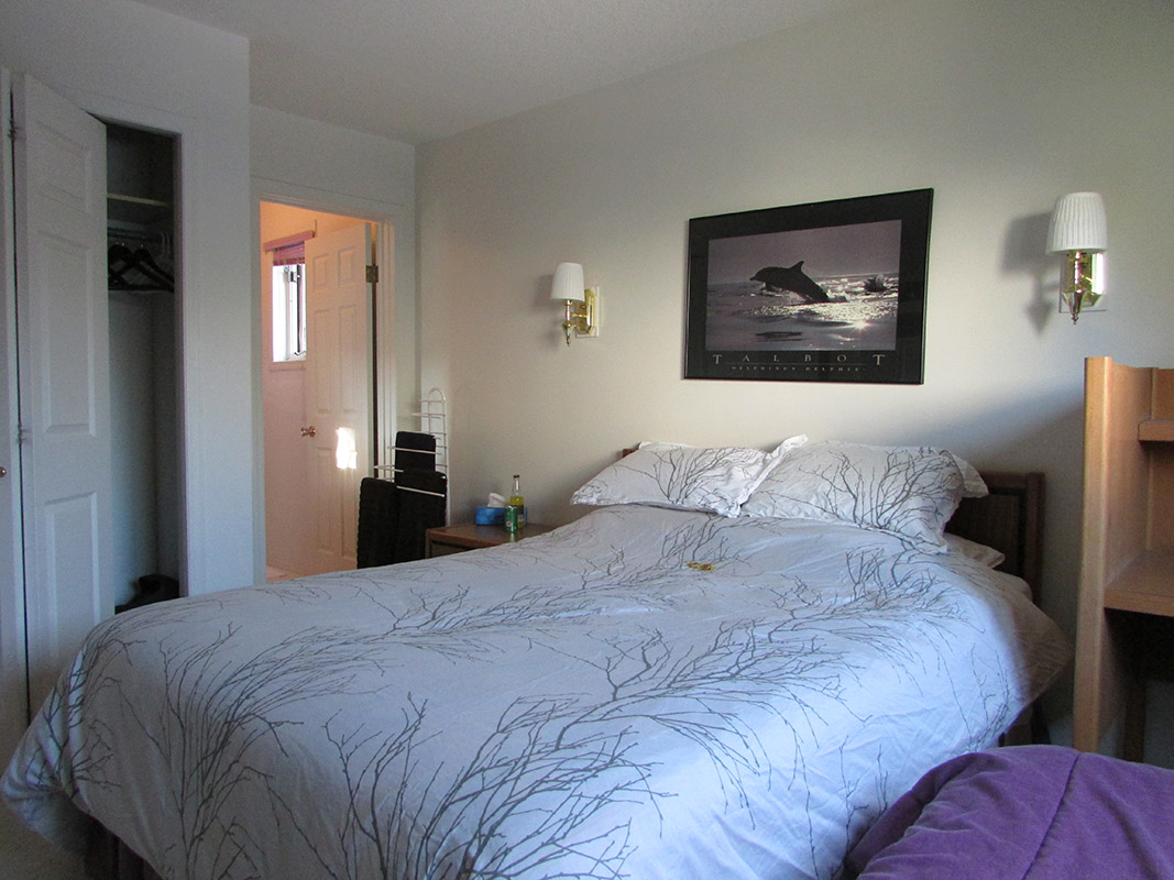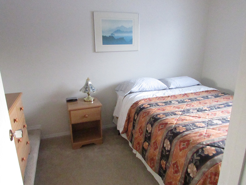 The three guest rooms are located exclusively on the main level. Our guests have two separate ground level entrances with only one step. Your hosts occupy the upper level. Lots of Space Our guest accommodations occupy over 1300 square feet! The spacious backyard is available to our guests for play and barbecues! Lots of Amenities Our guests enjoy their separate living/dining room with a light meal cooking corner. Guests are welcome to arrange for our family kitchen to prepare bigger meals. Our guest enjoy complimentary cable TV/DVD/VCR, and wireless internet. Rates (bathroom shared with other queen room) $115 single $125 couple Queen Ensuite (private ensuite full bathroom and workstation) $130 single $140 couple